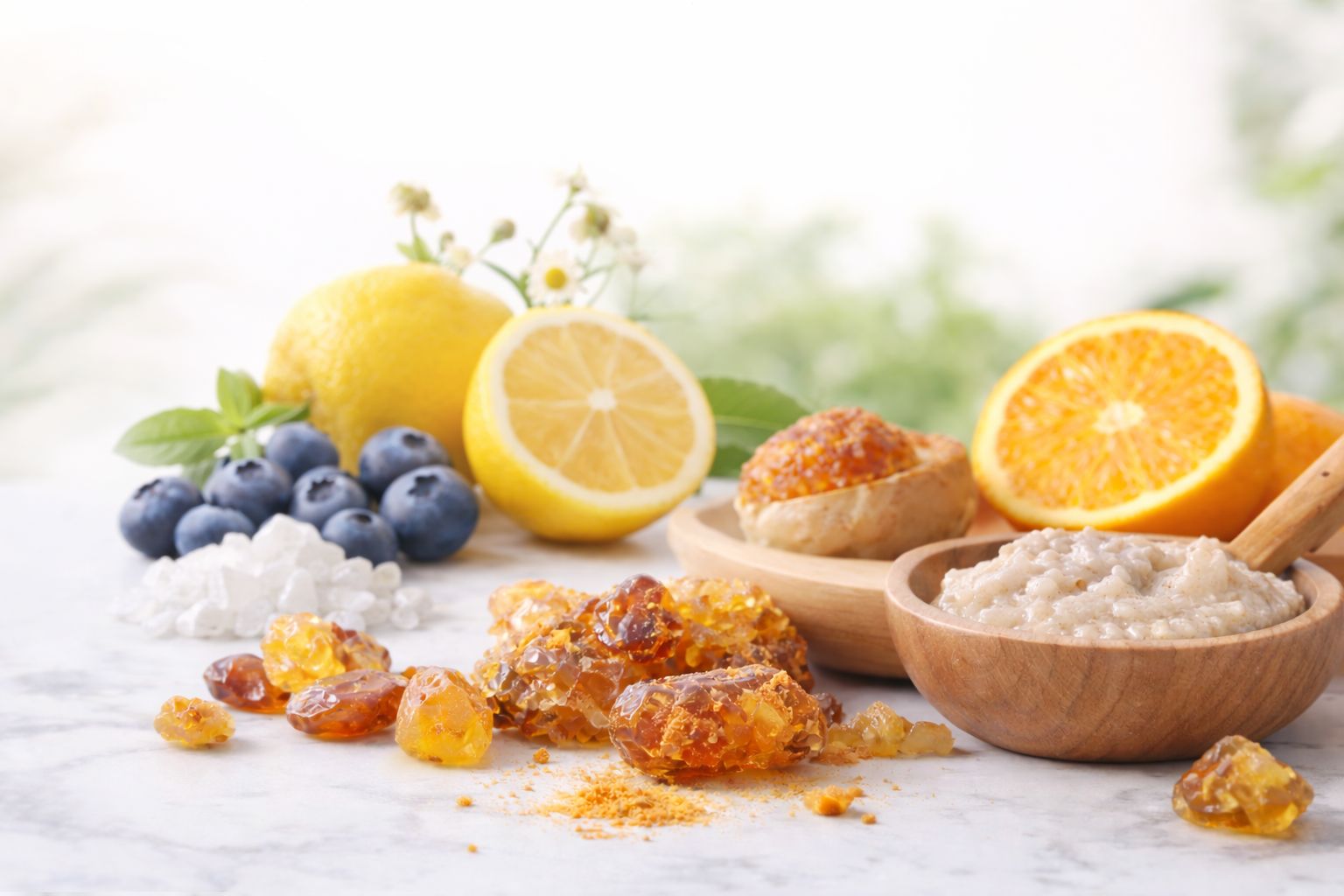 Mikrofeines Bernsteinpulver sorgt für eine gleichmäßige, sanfte Exfoliation, während milde Alpha-Hydroxy-Säuren (AHA)